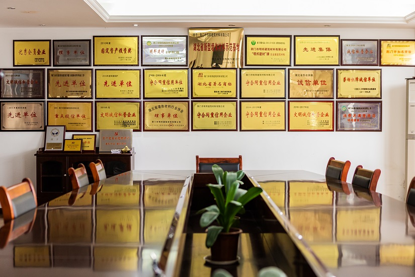 “明邦”商標被認定為“湖北省著名商標”,同時被評定為“湖北名牌”產品,企業(yè)同時被評定為“湖北省重合同守信用企業(yè)”、“湖北省新型墻材產業(yè)化示范基地”和“荊門市循環(huán)經濟示范企業(yè)”,公司通過了“綠色建材評價標識證書”、“GB/T 45001-2020職業(yè)健康安全管理體系認證證書”、“GB/T 19001-2016質量管理體系認證”、“GB/T 24001-2016環(huán)境管理體系認證證書”。